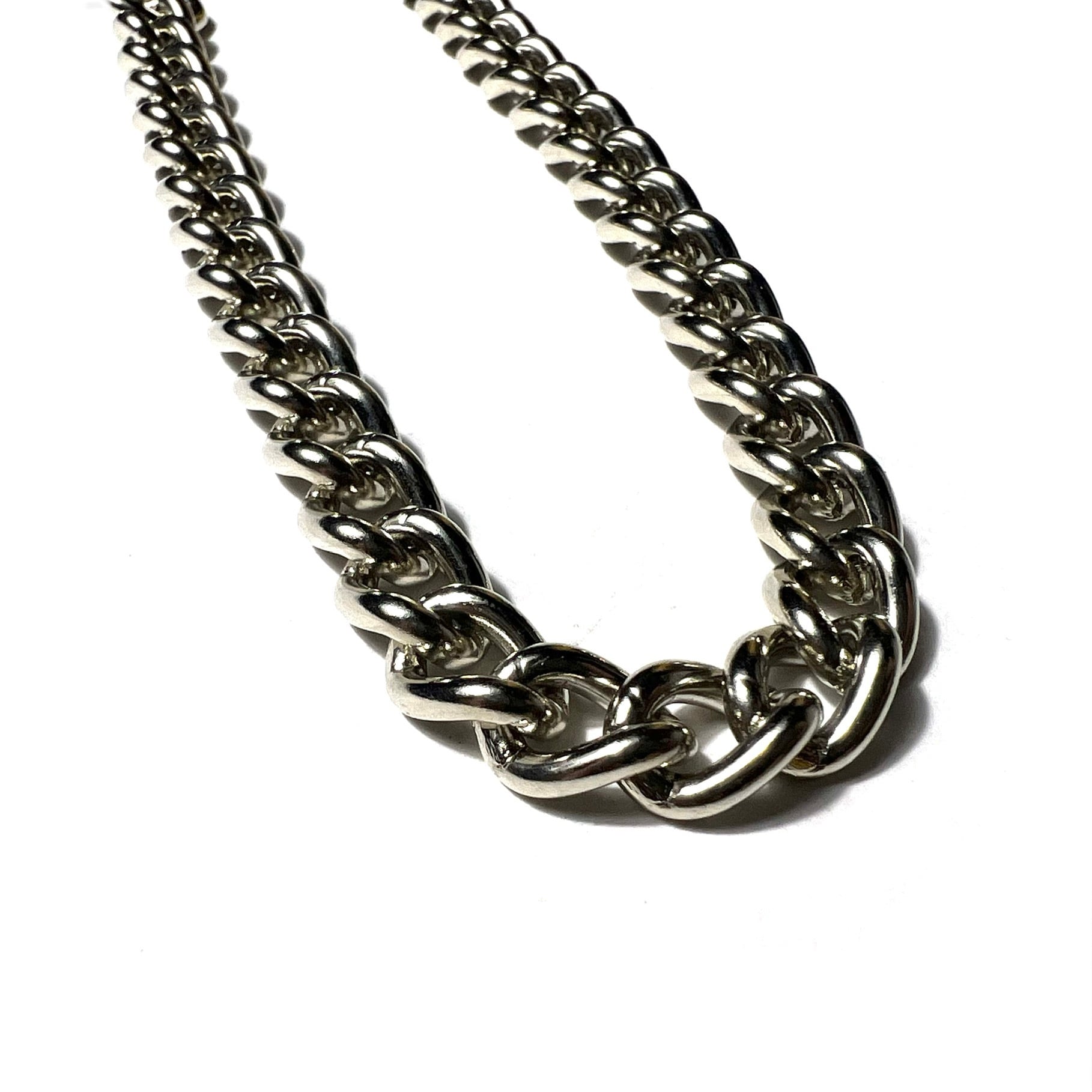 太さもありながらシンプルな30cmのチェーンで大人な腰回りを演出するようベストなサイズ感に調整。