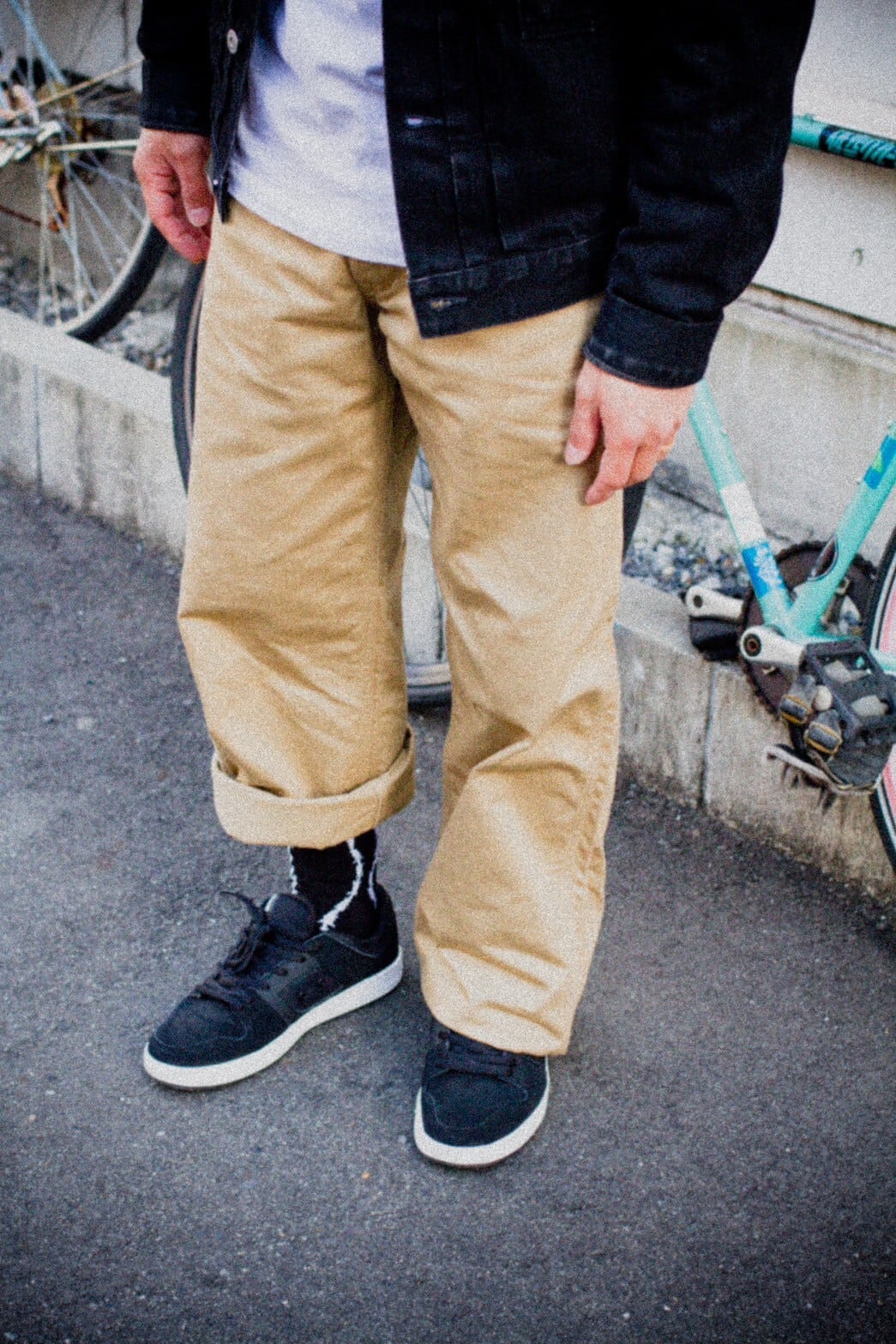 綾織りのコットンサージ生地を使用したフリスコパンツです。