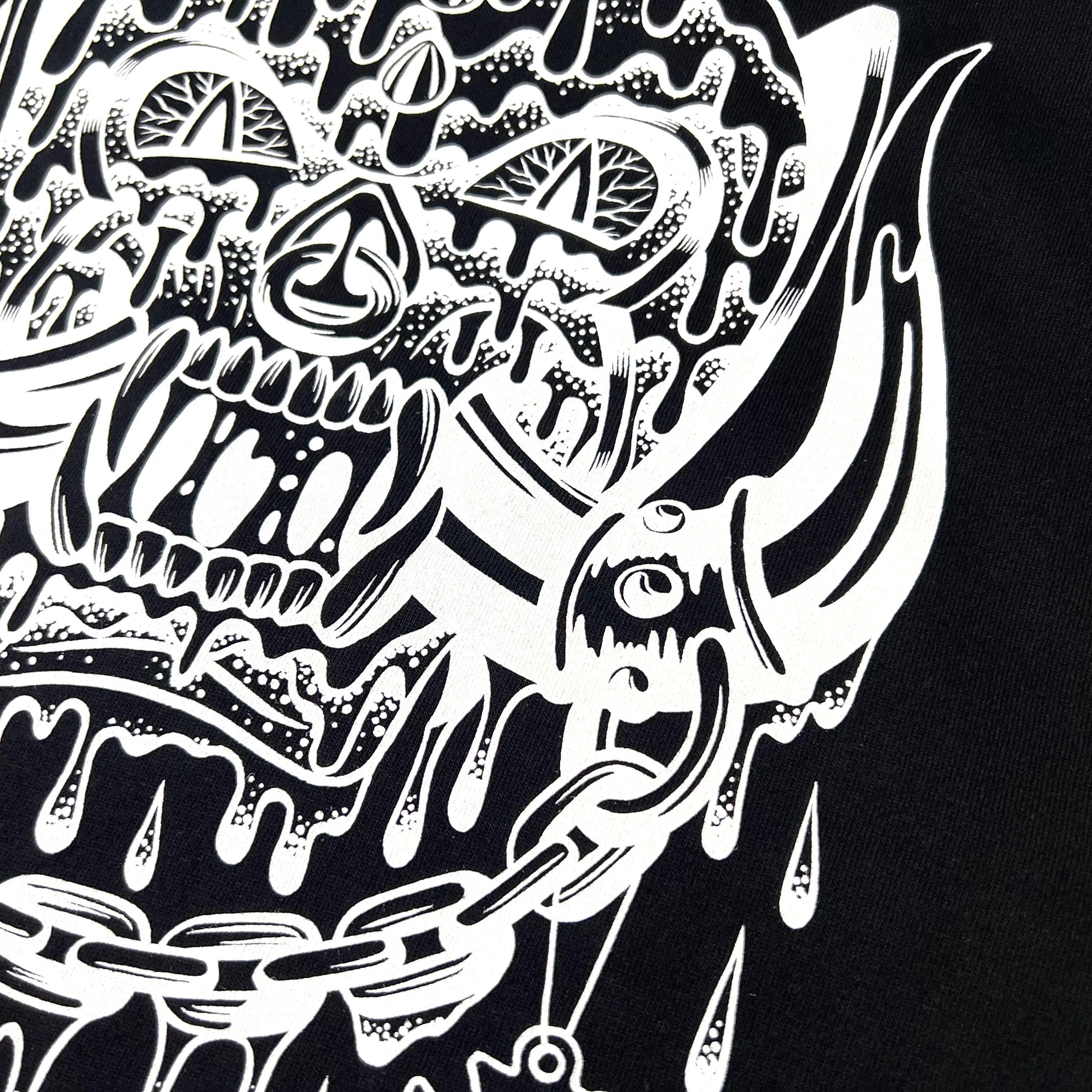 knuckle氏によるスペシャルなデザインと、そのデザインをシルクスクリーンにより再現したhells printers の熟練した高度な技術により完成致しました。