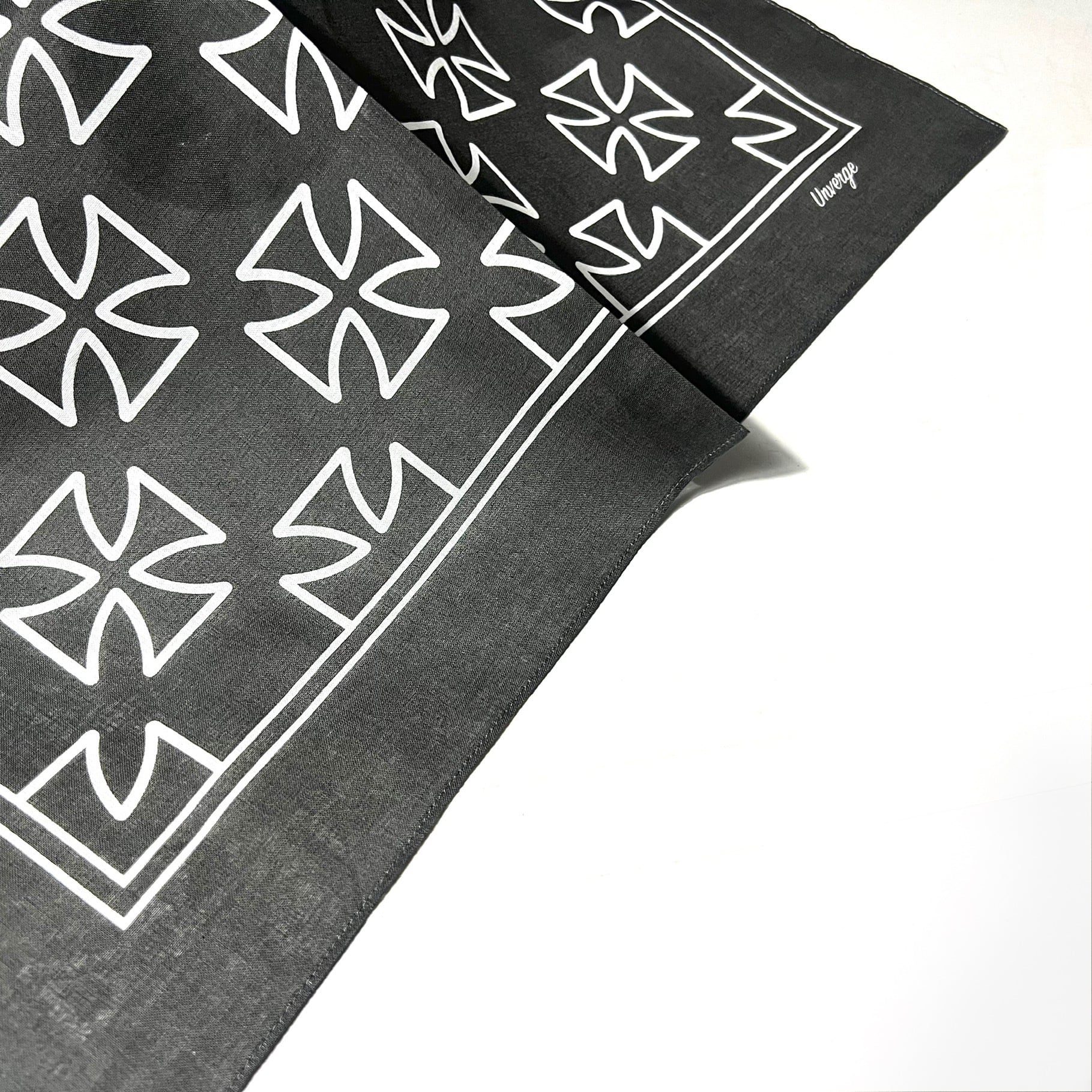 店主のバンダナコレクションよりヴィンテージのアイアンクロス柄のバンダナを現代にアップデートした一枚となります。