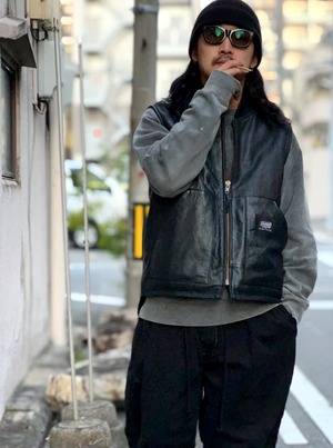 ビンテージのレザーを分解し再構築したオリジナルベストとなります。