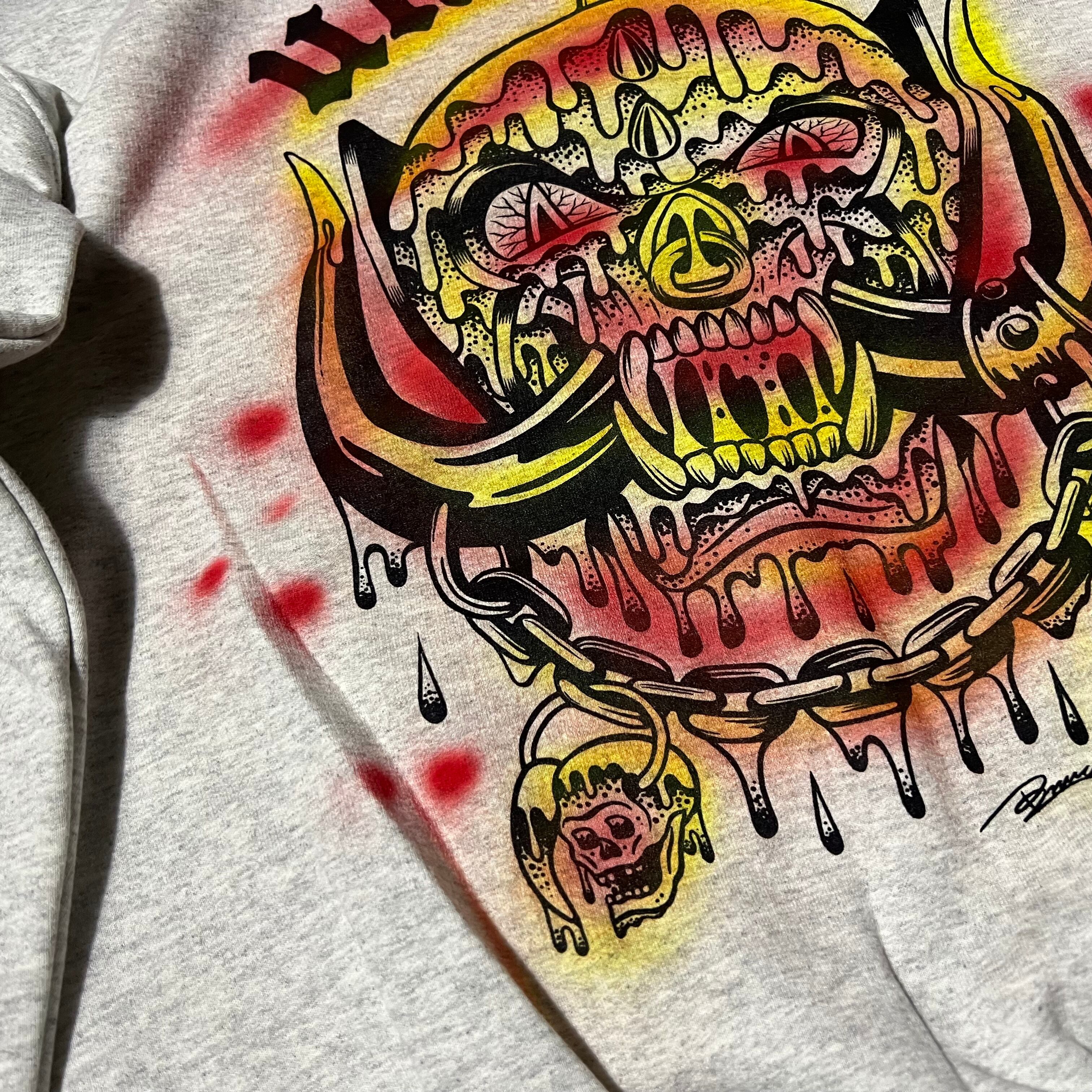 knuckle氏によるスペシャルなデザインと、そのデザインをシルクスクリーンにより再現したhells printers の熟練した高度な技術により完成致しました。